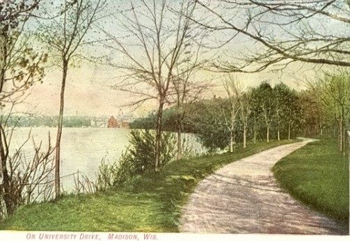 One of the most fascinating aspects of the MPPDA's work was the creation of "pleasure drives"—scenic roadways designed for leisurely travel through beautiful landscapes. The Association proposed four drives: from the University to Picnic Point, around Lake Mendota, from Sherman Avenue to the hospital, and around Lake Monona. George Raymer, founder of University Press, was an early ally, opening his land to the public in 1881 as Raymer Road along Lake Mendota's shore—now Lake Mendota Drive.
